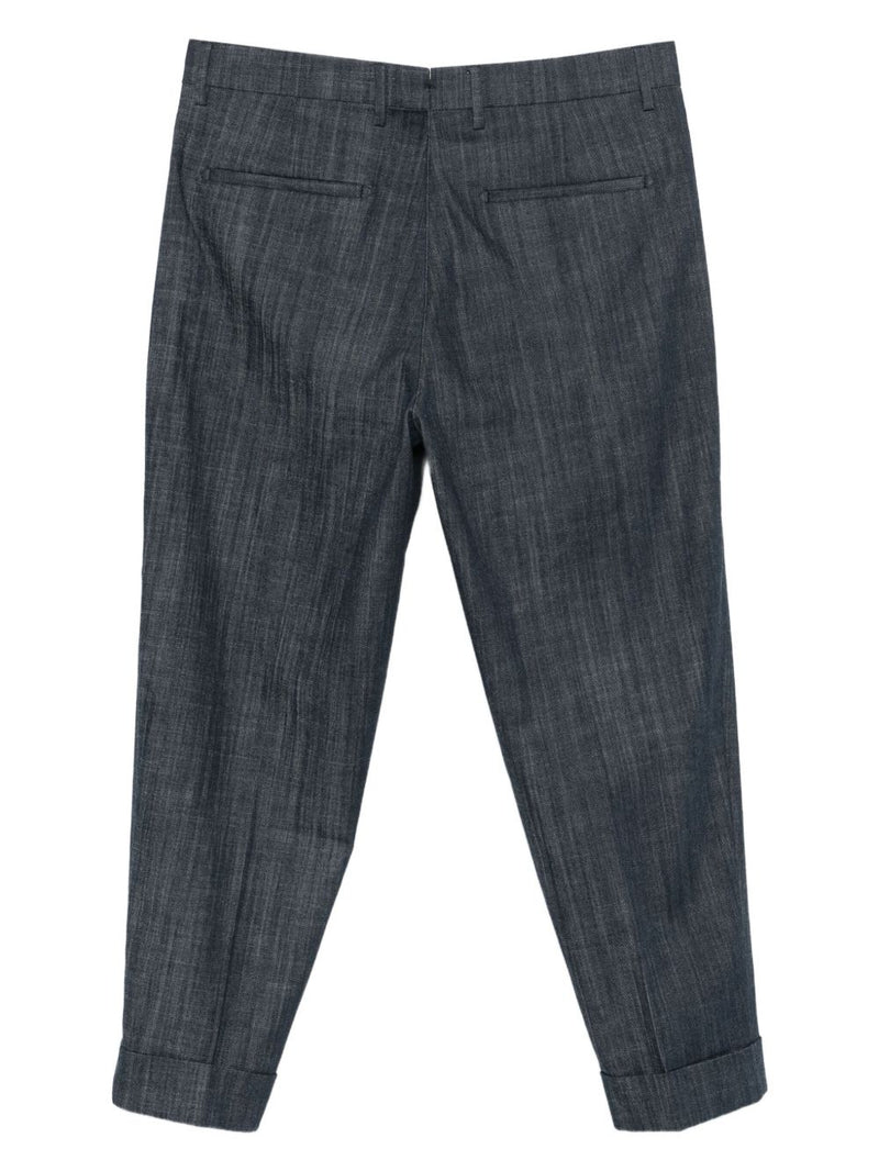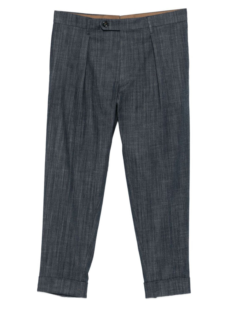 Le pieghe frontali, l’orlo con risvolto e le tasche posteriori a filetto sottolineano il gusto sartoriale del modello, mentre la chiusura a bottoni e i passanti in vita completano un design essenziale e sofisticato.