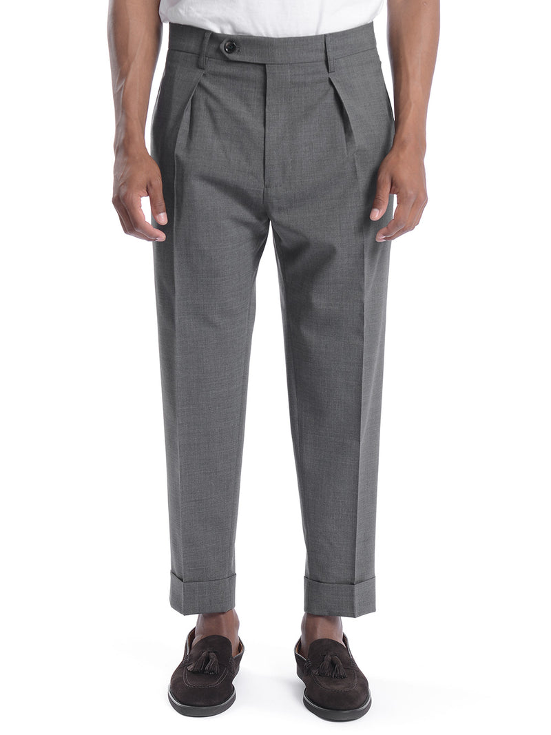 Scopri l'eleganza senza tempo dei pantaloni Berwich modello Chiaia in un raffinato colore grigio fumo. Questo capo è perfetto per l'uomo moderno che apprezza il design classico con un tocco contemporaneo. Dotato di una pince singola e risvolto sul fondo, offre un tocco di ricercatezza a ogni outfit.