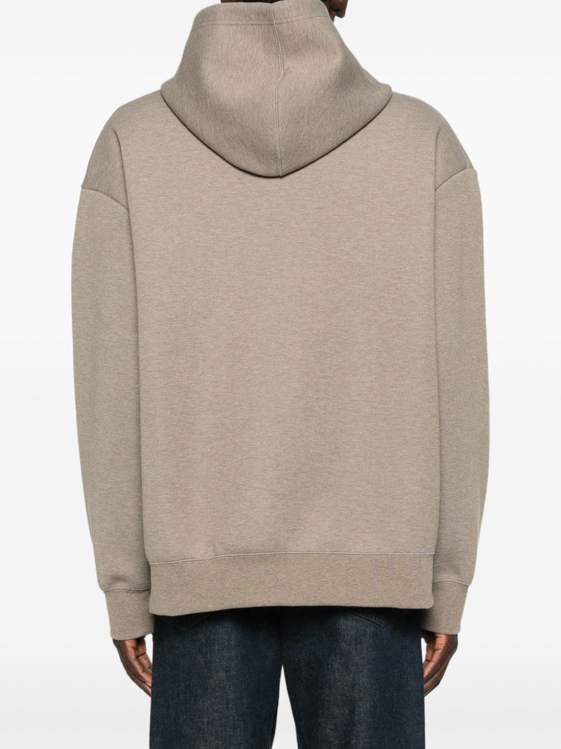 Il design funzionale include un cappuccio con coulisse regolabile e una capiente tasca frontale a marsupio, ideale per la massima praticità quotidiana. Il discreto dettaglio logo firma il capo con autenticità, mentre l'orlo a coste e le maniche lunghe assicurano una tenuta perfetta. Realizzata con una morbida fodera in misto cotone e poliestere, garantisce un comfort superiore e una mano piacevole al tatto.
