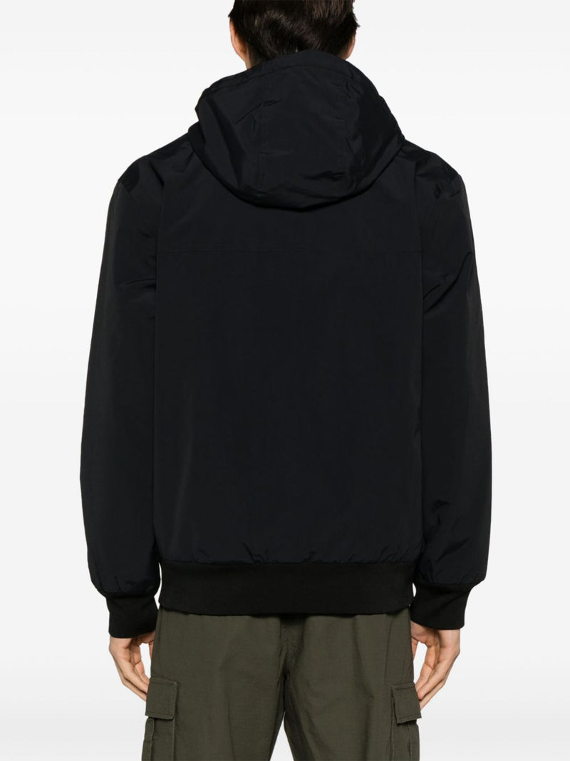 Proposta nel colore nero, presenta un pratico cappuccio con coulisse, una chiusura frontale con zip e un design ricco di dettagli funzionali: due tasche laterali con zip, tasca interna applicata e finiture con orlo e polsini a coste per una vestibilità stabile e protettiva. Il logo ricamato sul petto aggiunge un tocco distintivo tipico dell’estetica Carhartt WIP.