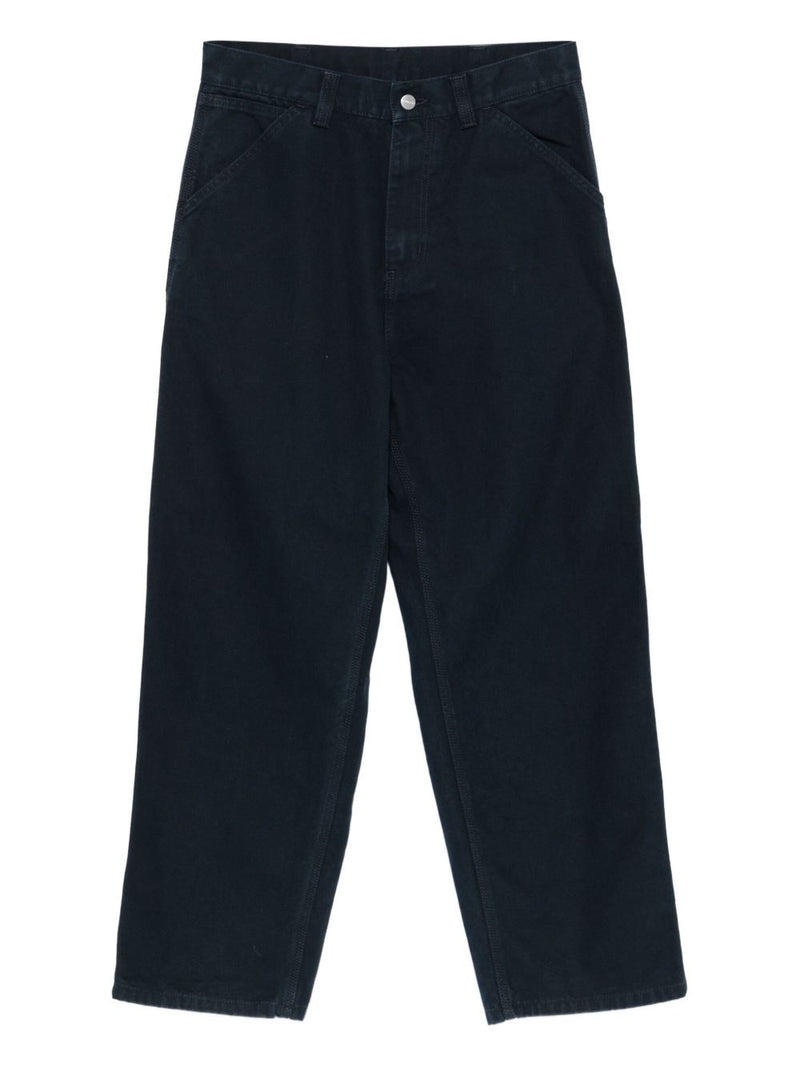 Proposti in blu scuro, presentano chiusura frontale con bottoni e zip, passanti per cintura e taglio dritto, per un look pulito e versatile. Il design minimal e la qualità dei materiali riflettono l’autentico spirito workwear di Carhartt WIP.