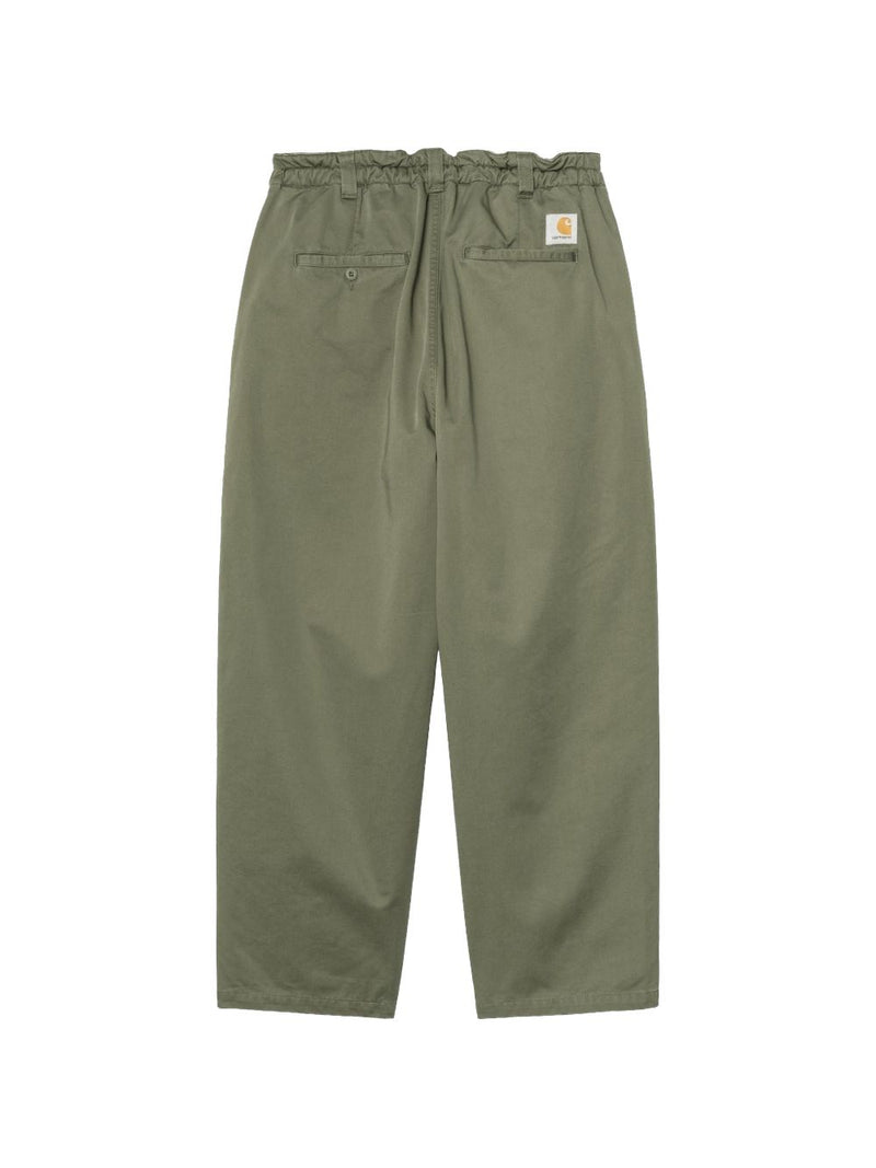 I Marv Pant di Carhartt WIP in questa decisa tonalità verde rappresentano l'evoluzione stilistica del classico pantalone utility. Realizzati in Twill Lenexa da 8 oz, un cotone di medio peso ideale per tutte le stagioni, sono sottoposti a un lavaggio con pietre abrasive che ne esalta la morbidezza e dona al colore una sfumatura autentica e leggermente vissuta. La vestibilità loose tapered fit offre volumi generosi sulla coscia che si restringono elegantemente verso la caviglia, garantendo una silhouette moderna.