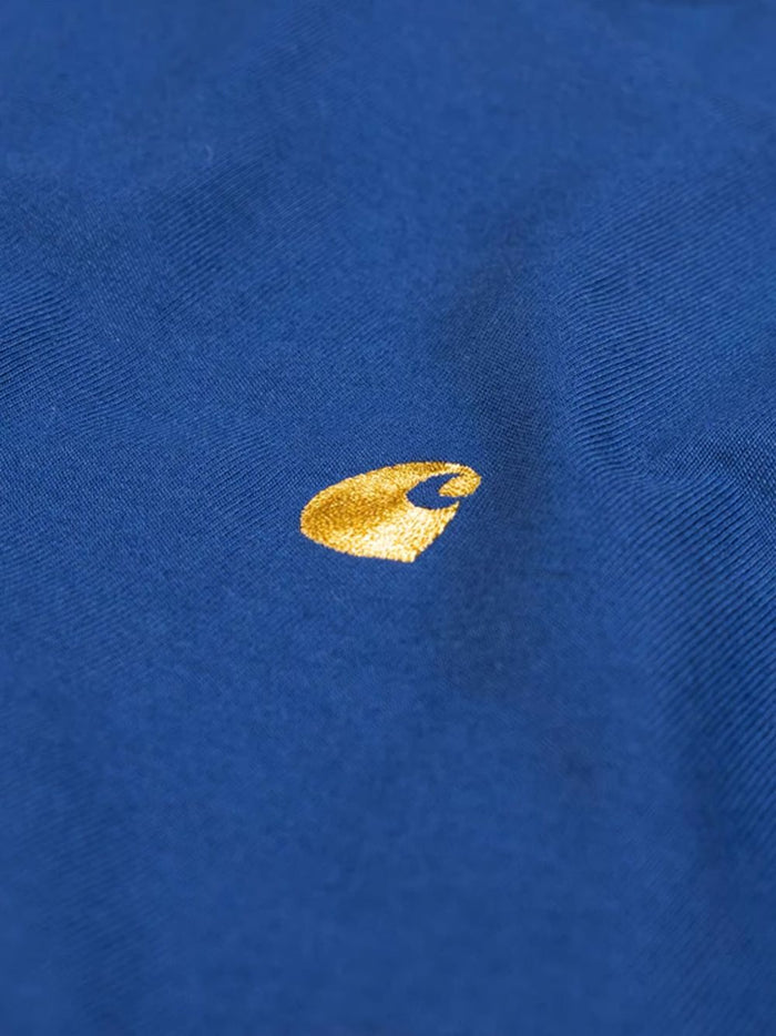 La T-shirt Carhartt Wip Chase Uomo in colorazione blu con micro ricamo giallo è un capo essenziale per ogni guardaroba urbano. Realizzata in 100% cotone di alta qualità, unisce comfort e resistenza con un’estetica minimal e raffinata.