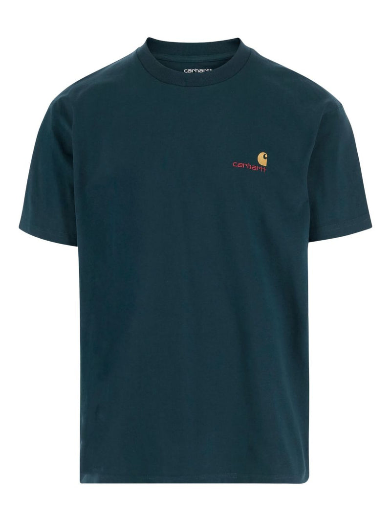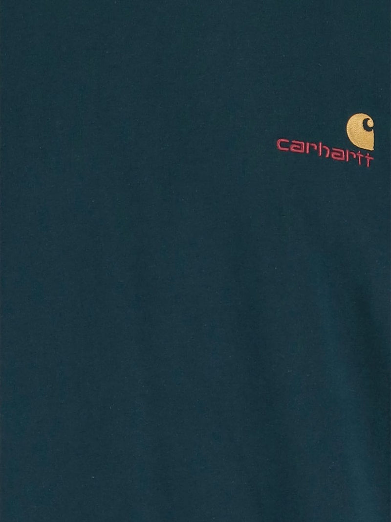 La T-shirt Carhartt WIP American Uomo in verde bottiglia è un capo iconico che fonde comfort e stile streetwear autentico. Realizzata in cotone biologico di alta qualità, offre una struttura morbida ma resistente, perfetta per l’uso quotidiano.
