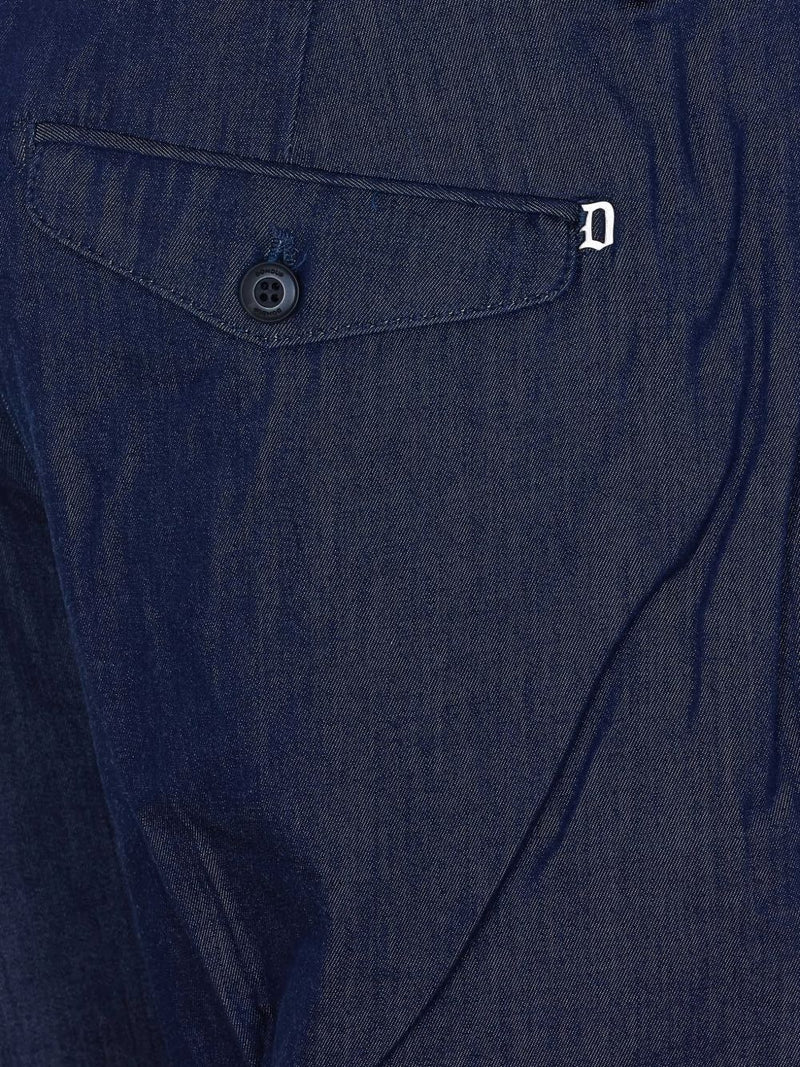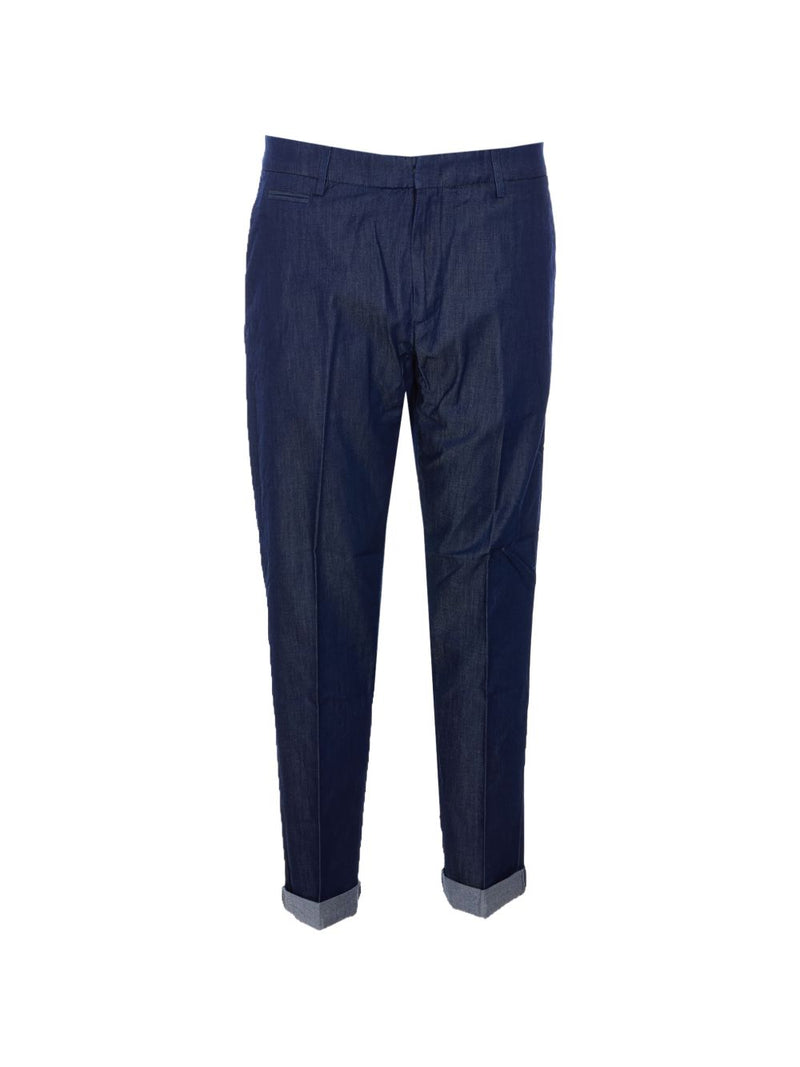 La colorazione blu profonda ne esalta la versatilità, rendendoli perfetti per diverse occasioni d'uso. La funzionalità è garantita dalla doppia chiusura con bottoni e zip, che assicura una vestibilità impeccabile e sicura. Che siano indossati per una giornata in ufficio meno formale o per il tempo libero in città, i pantaloni Joe offrono un perfetto equilibrio tra morbidezza del tessuto e tenuta della forma, confermando l'eccellenza sartoriale del brand Dondup.