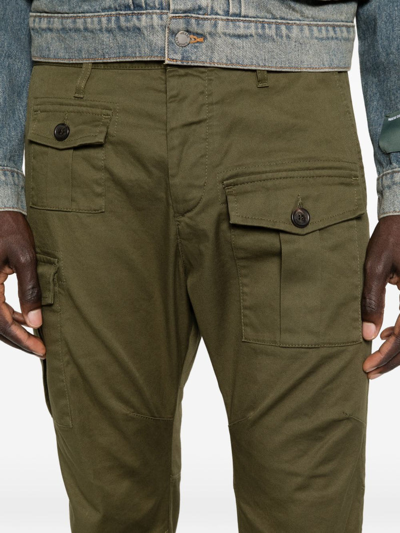 I pantaloni cargo con gamba affusolata di Dsquared2 fondono l'estetica utility con il DNA audace e sartoriale del brand. Realizzati in una decisa tonalità verde oliva, questi pantaloni rappresentano la scelta ideale per chi cerca un look dinamico senza rinunciare alla qualità del Made in Italy. La loro forza risiede nel tessuto in misto cotone ed elastam, che offre la robustezza tipica dei capi d'ispirazione militare unita a una piacevole elasticità che asseconda ogni movimento.