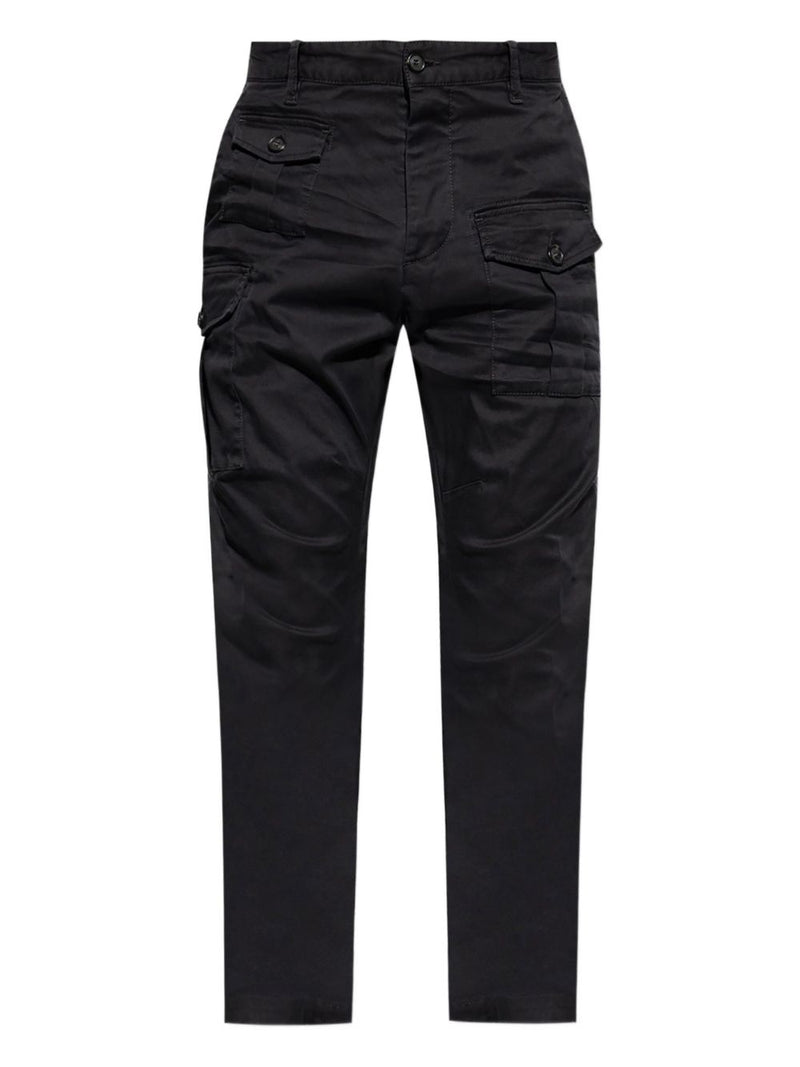Proposti in nero, presentano tasche cargo laterali, chiusura frontale con abbottonatura e passanti per cintura. Arricchiti da un design a gamba affusolata e dettagli con cuciture, questi pantaloni firmati DSQUARED2 sono un must-have esclusivo per gli amanti dello streetwear. Acquistali ora su Di Pierro Brand Store.