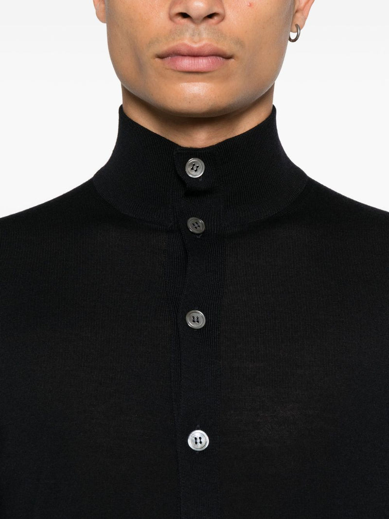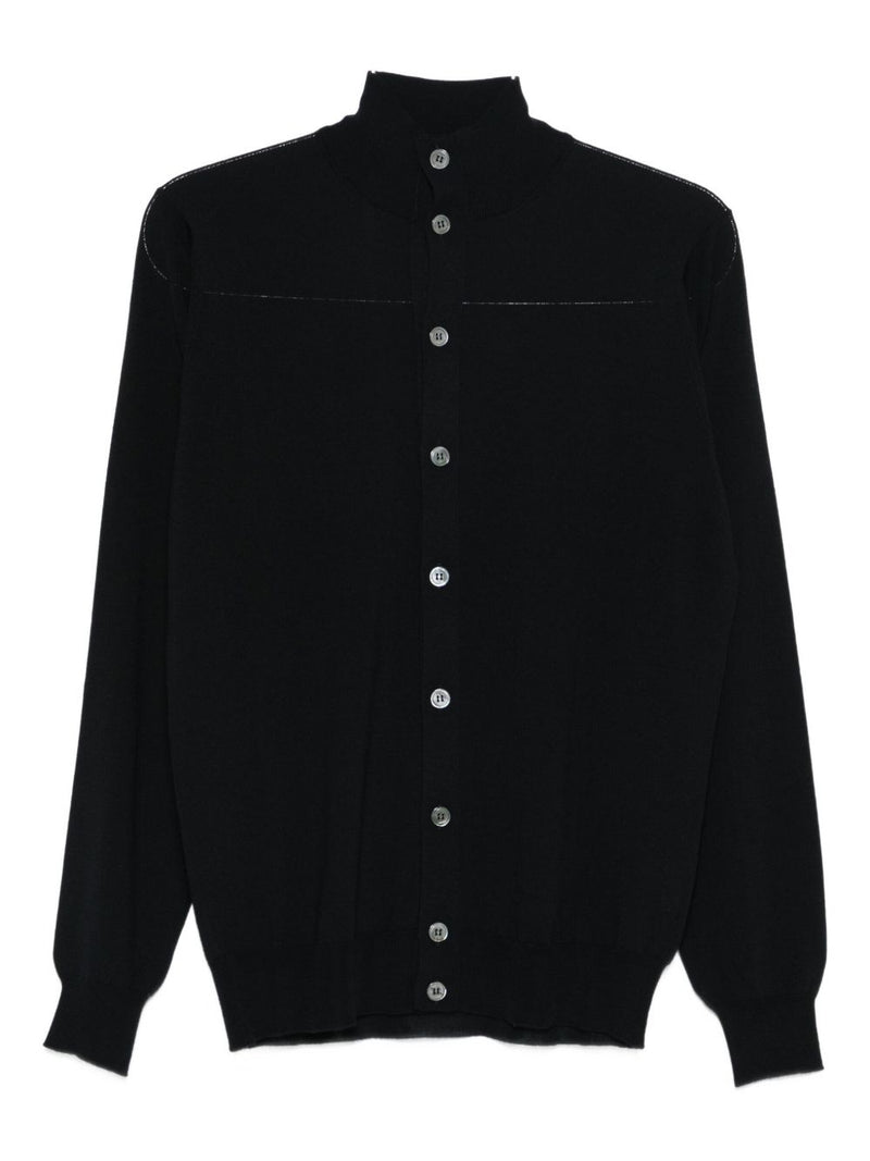 Proposto in blu navy, presenta collo alto e chiusura frontale con bottoni, per uno stile sobrio e raffinato. La qualità del filato e la cura dei dettagli riflettono l’eccellenza del made in Italy, rendendo questo cardigan un must-have per l’uomo che ama la maglieria di pregio.