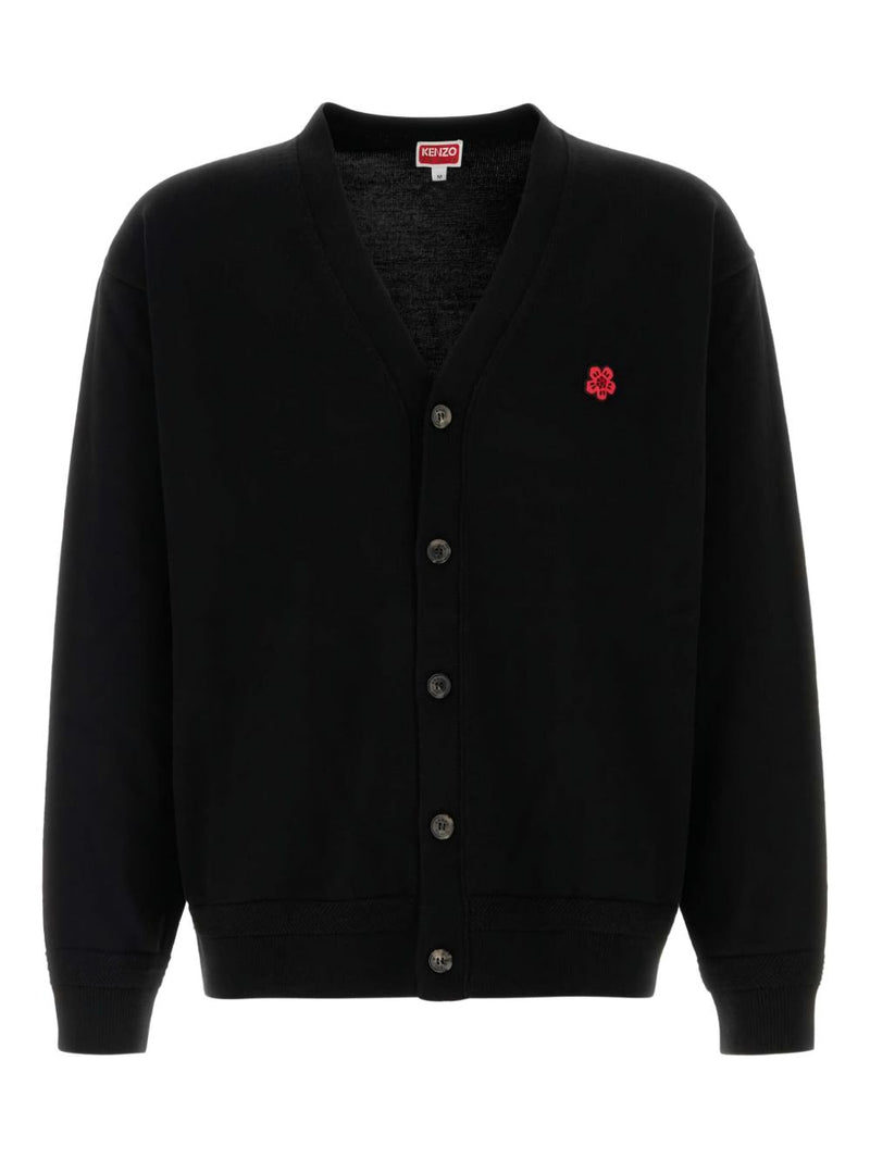 Kenzo Cardigan Nero Uomo Micro Fiore Boke