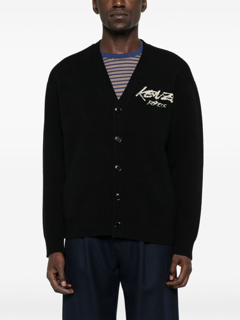 Kenzo Cardigan Nero Uomo Fiori Posteriori