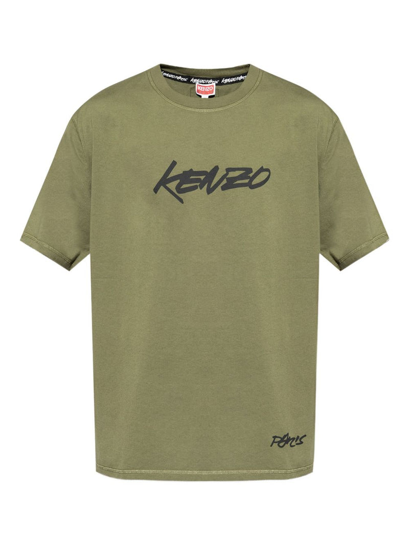 Kenzo T-shirt Verde Uomo Stampa Logo Anteriore