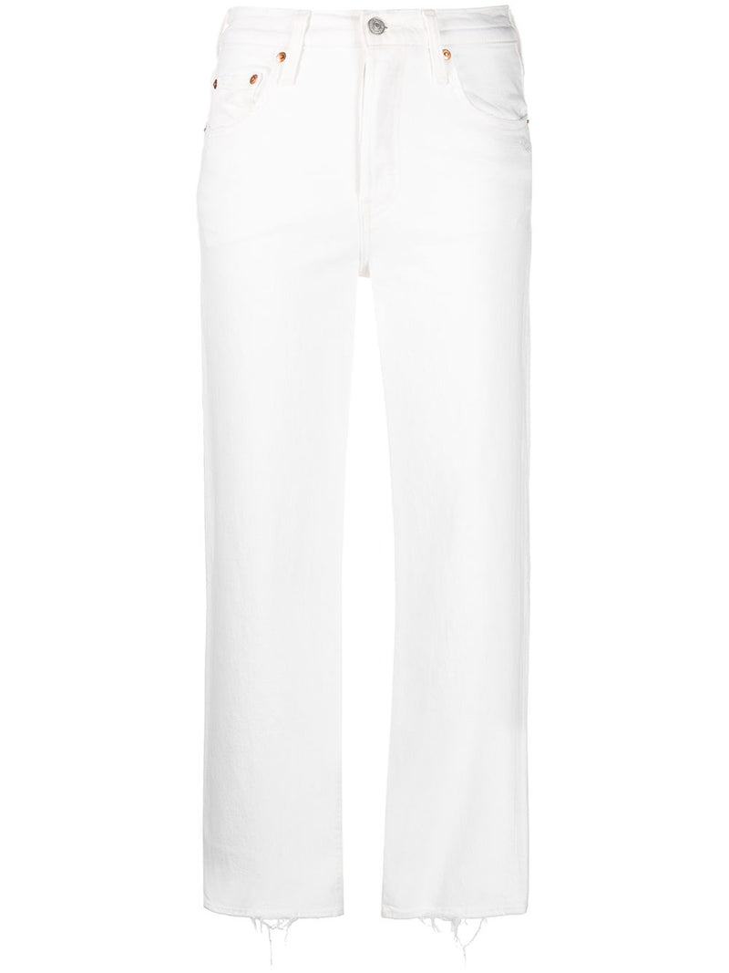 I jeans Ribcage Straight Alla Caviglia a vita alta di Levi's interpretano il denim iconico del brand con un’estetica pulita e moderna. Proposti in bianco, presentano una vita alta che valorizza la silhouette e una lunghezza alla caviglia perfetta per look freschi e versatili.
