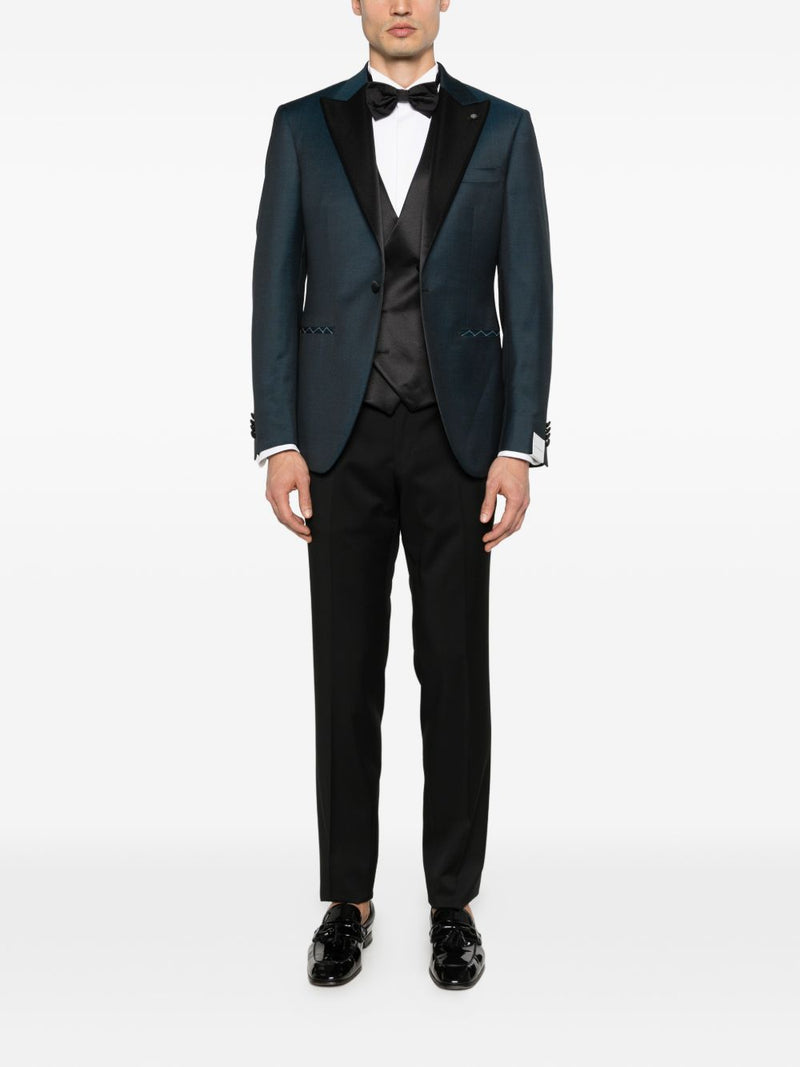 - Design/Stile: giacca monopetto con rever a lancia a contrasto, linea pulita e raffinata
