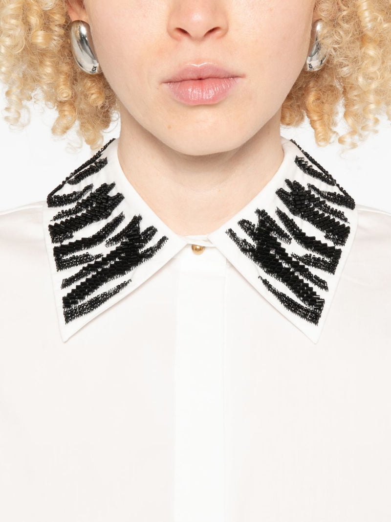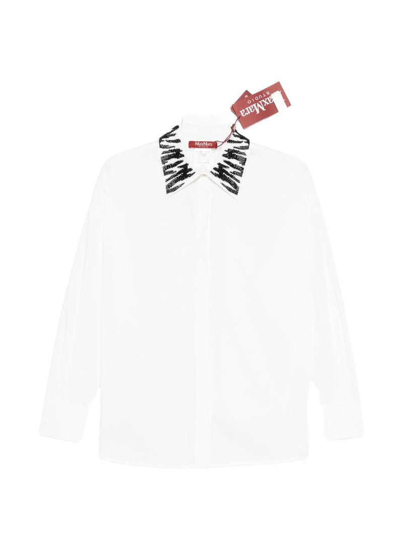 La camicia da donna Max Mara si distingue per la linea essenziale e l’eleganza discreta, valorizzata dal particolare colletto multicolore a contrasto. Il design pulito e la costruzione curata ne fanno un capo versatile, adatto a completare look formali e contemporanei.