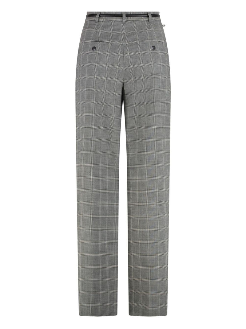 Proposti in grigio con motivo a quadri, presentano passanti per cintura e taglio dritto, che valorizzano la silhouette mantenendo un’eleganza sobria e raffinata. La cintura in coordinato completa il look, sottolineando il punto vita con discrezione. Orgogliosamente Made in Italy, incarnano la qualità e la classe inconfondibili di Max Mara.
