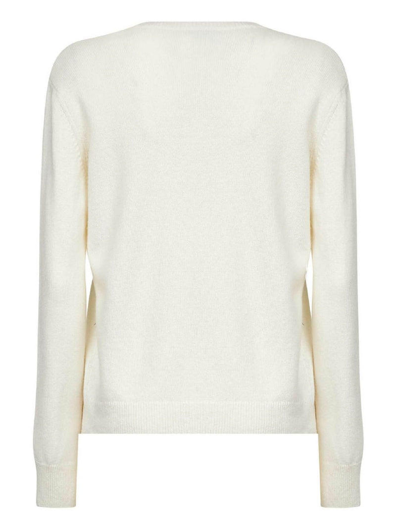 La tonalità bianca esalta la lavorazione pulita e luminosa del modello, mentre il girocollo a coste, le maniche lunghe e gli orli a coste definiscono una silhouette classica e versatile.