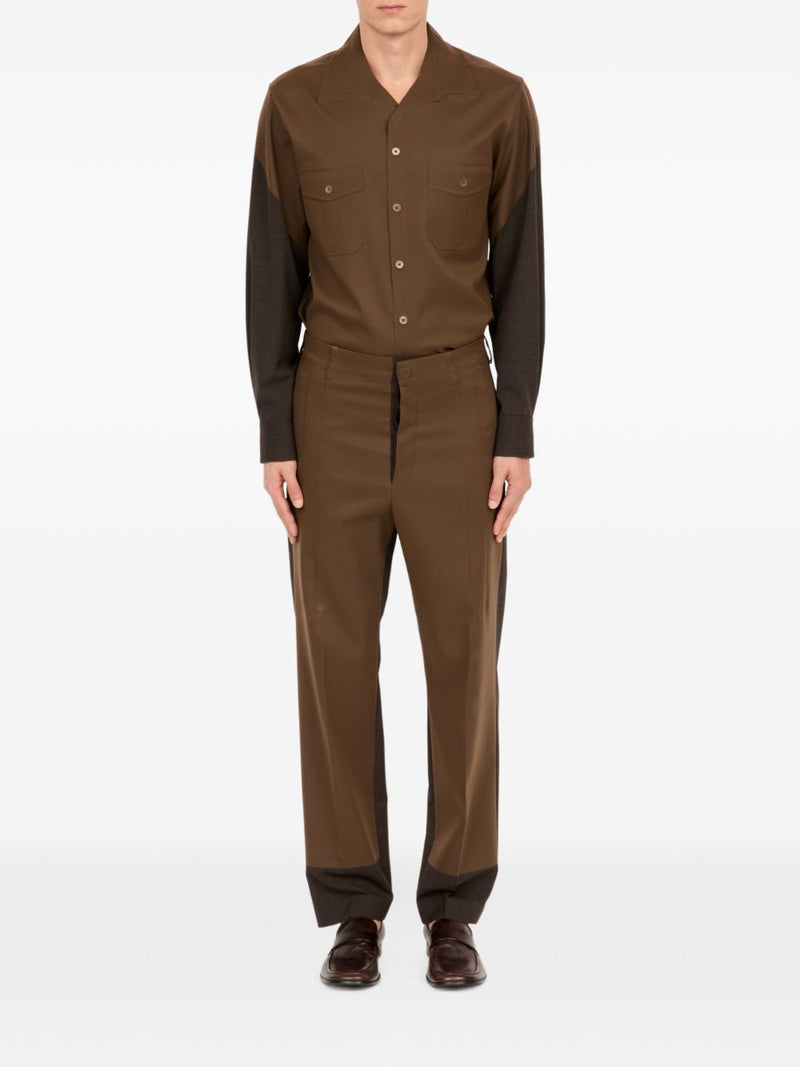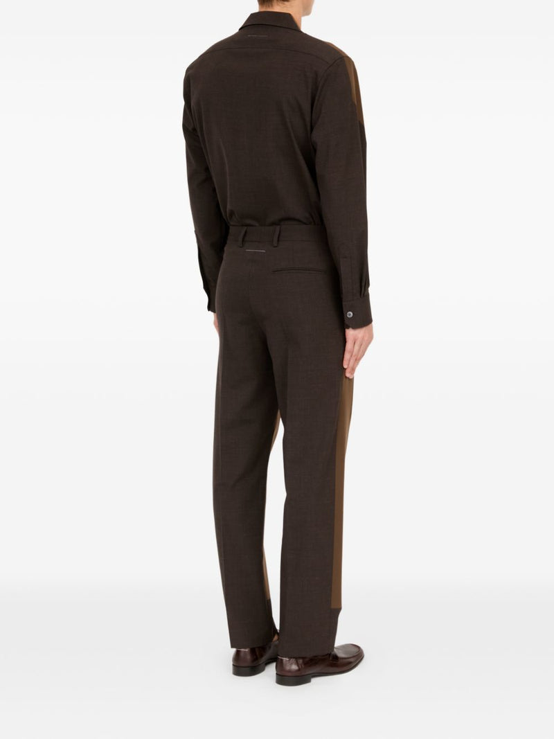I pantaloni multicolore da uomo MM6 Maison Margiela presentano una linea pulita e contemporanea, con gamba dritta e costruzione sartoriale. Il design valorizza il contrasto di colore tra il corpo principale e gli inserti a fondo gamba, per un effetto grafico distintivo ma equilibrato.