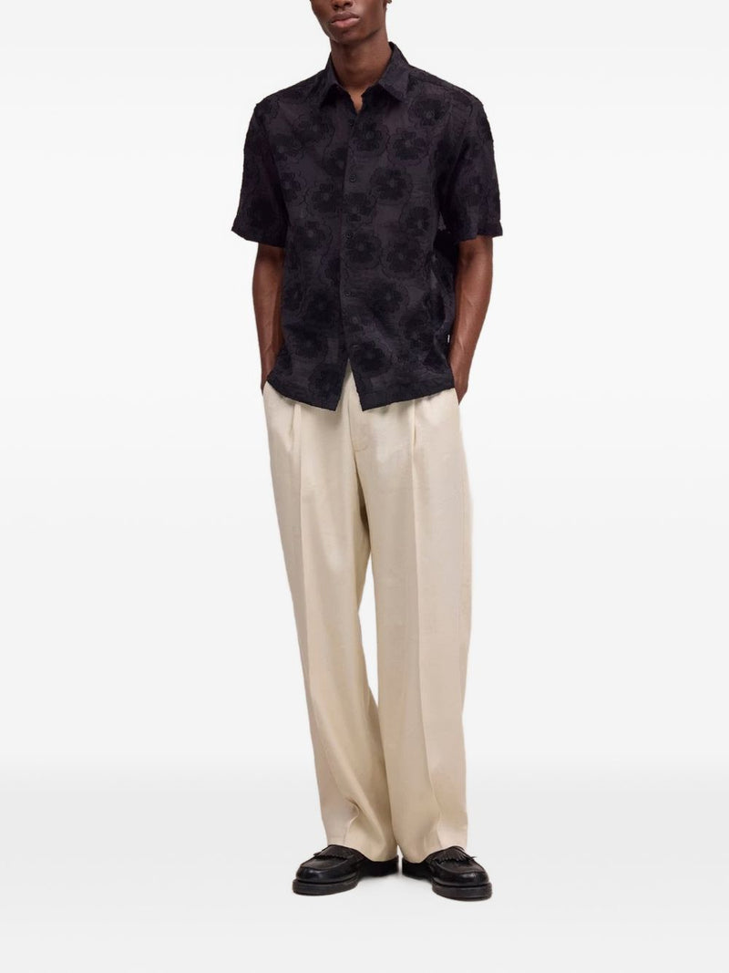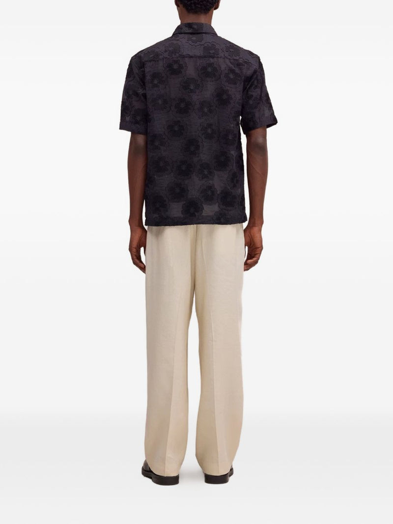 La camicia uomo a maniche corte nn.07 si distingue per il raffinato motivo floreale tono su tono che arricchisce il tessuto nero, donando un carattere contemporaneo e ricercato. Il modello presenta colletto classico e chiusura frontale con bottoni coperti, per un look pulito e minimale adatto a diverse occasioni.