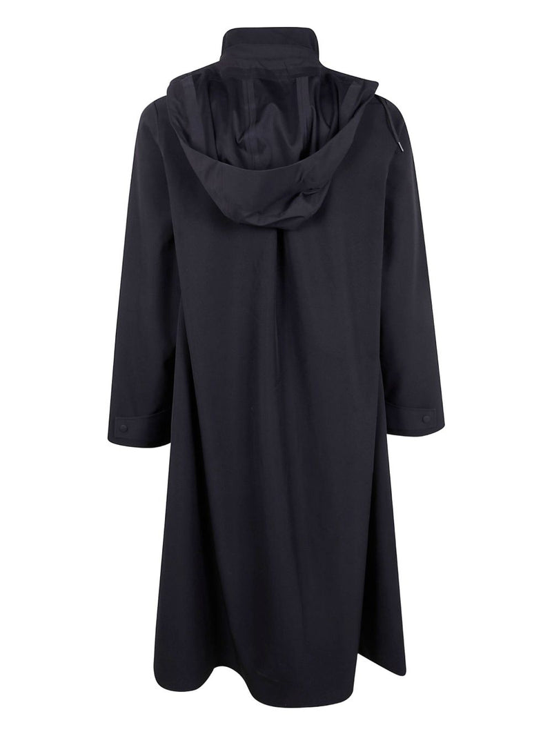 Proposto in nero, presenta una linea svasata che dona movimento e femminilità, un collo alto e un cappuccio regolabile per la massima protezione. La chiusura frontale con zip assicura praticità, mentre le tasche laterali aggiungono funzionalità al design minimalista tipico di Rains. Le maniche lunghe e la struttura morbida del tessuto garantiscono una vestibilità confortevole e raffinata.