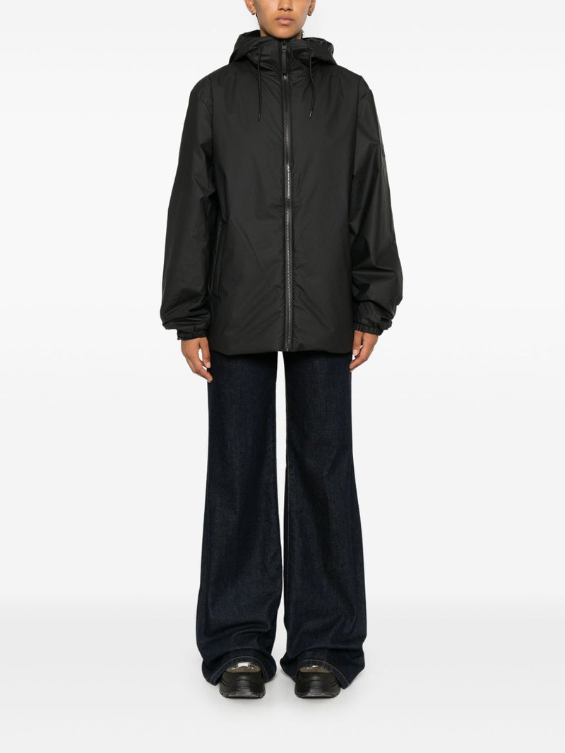 Proposta in nero, presenta un collo a lupetto e un cappuccio con coulisse regolabile per una protezione ottimale. La chiusura frontale con zip, le maniche lunghe e gli orli elasticizzati assicurano una vestibilità comoda e funzionale, mentre la vita elasticizzata con coulisse interna consente di adattare il fit. Completano il design due tasche laterali a filetto, una tasca interna con zip e l’applicazione del logo sulla manica, per un tocco distintivo firmato Rains.