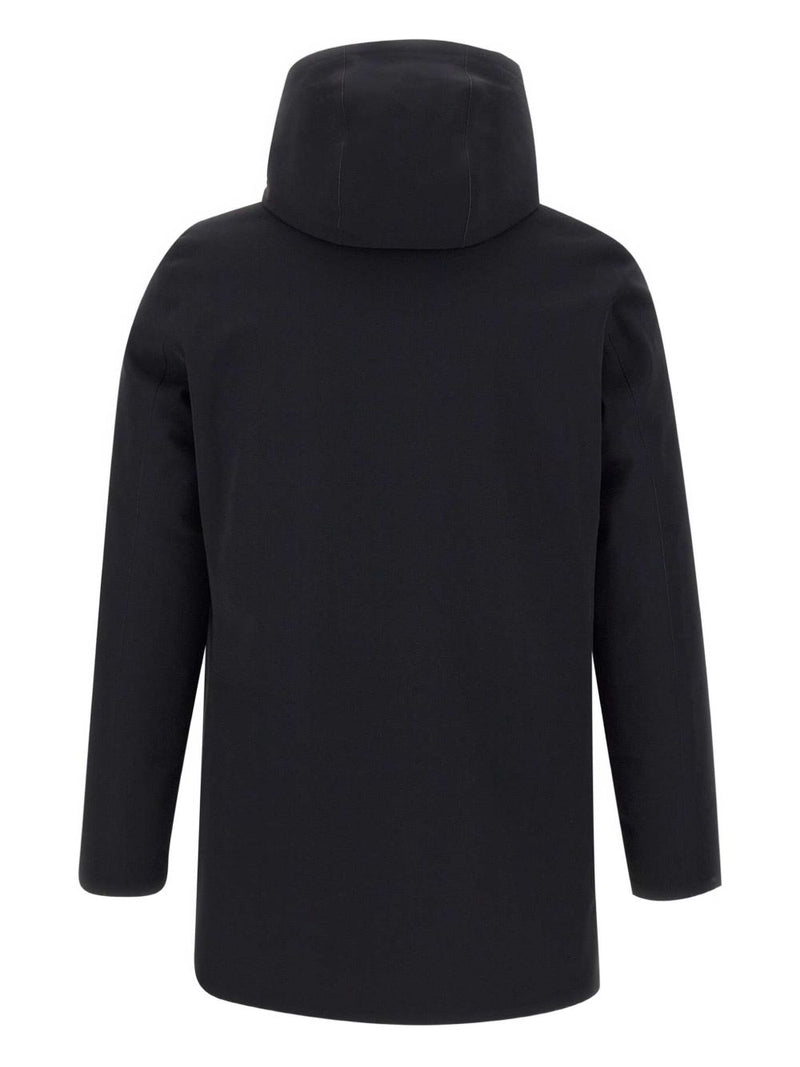Proposto in nero, presenta cappuccio integrato, chiusura frontale con bottoni a pressione e tasche a filetto, per un look pulito ed essenziale. Il taglio moderno e i materiali performanti riflettono la cura sartoriale e la tecnologia esclusiva di RRD, ideale per affrontare la stagione fredda con stile.