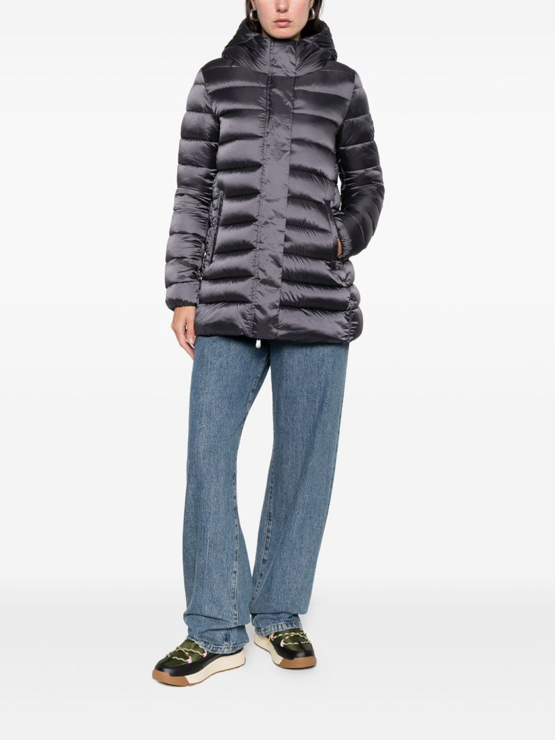 Proposto in un elegante tono grigio ebano, presenta un design imbottito, cappuccio integrato, maniche lunghe e tasche frontali che rendono il capo funzionale e versatile. L’iconica applicazione con logo Save The Duck aggiunge un tocco distintivo, simbolo di sostenibilità e innovazione.
