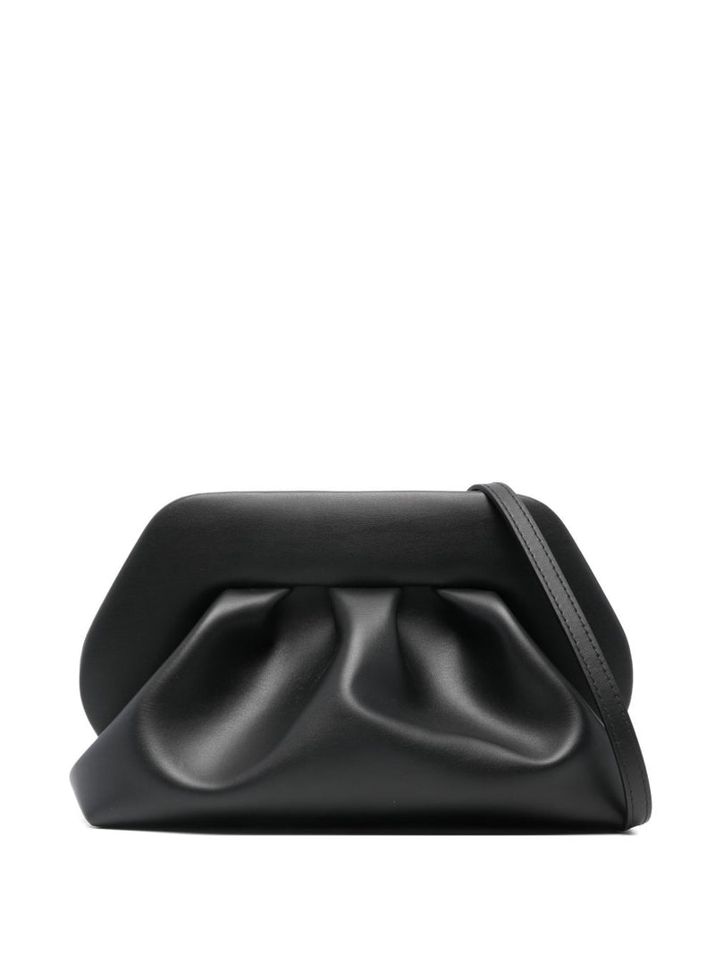 La Borsa Clutch Bios Medium di THEMOIRè in versione nera con dettagli color oro è la sintesi perfetta tra eleganza classica e attitudine contemporanea. Questo modello, pilastro delle collezioni del brand, si distingue per i suoi iconici dettagli con arricciatura che conferiscono un volume morbido e scultoreo, trasformando un materiale innovativo in un pezzo d'alta pelletteria.
