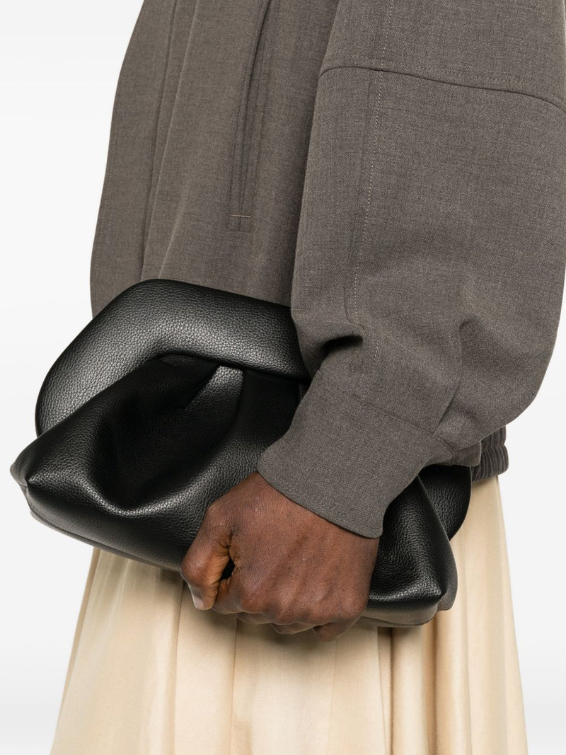 La clutch Bios media di Themoirè in versione nero è il quintessenza dell'accessorio versatile, capace di elevare ogni outfit con un tocco di sobria raffinatezza. Rigorosamente Made in Italy, questa variante si distingue per il sofisticato effetto martellato della superficie, che dona profondità alla texture e una maggiore resistenza all'uso quotidiano. Il design, caratterizzato dalle iconiche pieghe morbide del brand, fonde una silhouette organica con un'estetica urbana e decisa.