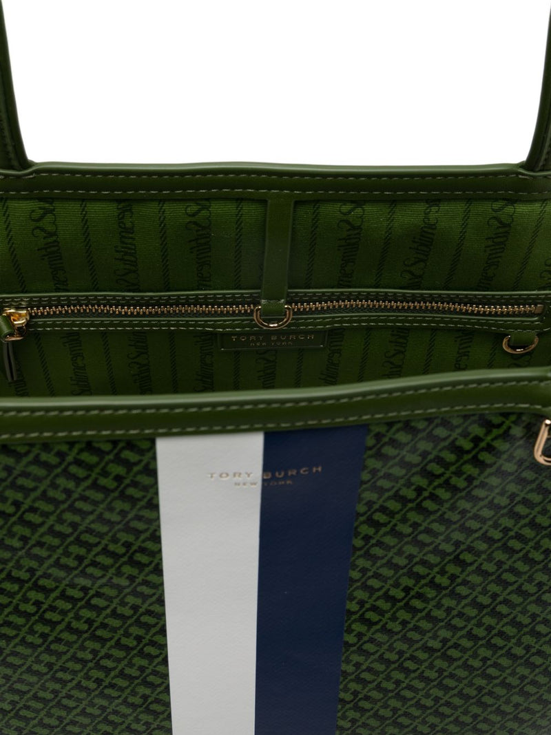 La Borsa Racer Tote di Tory Burch trae ispirazione dalle linee dinamiche e dalle audaci strisce delle auto da corsa, reinterpretandole in un accessorio leggero, resistente e sofisticato. Realizzata in canvas spalmato impermeabile (un mix di cotone e lino), questa borsa è progettata per affrontare con stile la frenesia quotidiana, dai pendolari urbani alle commissioni veloci, fino alle fughe del weekend.